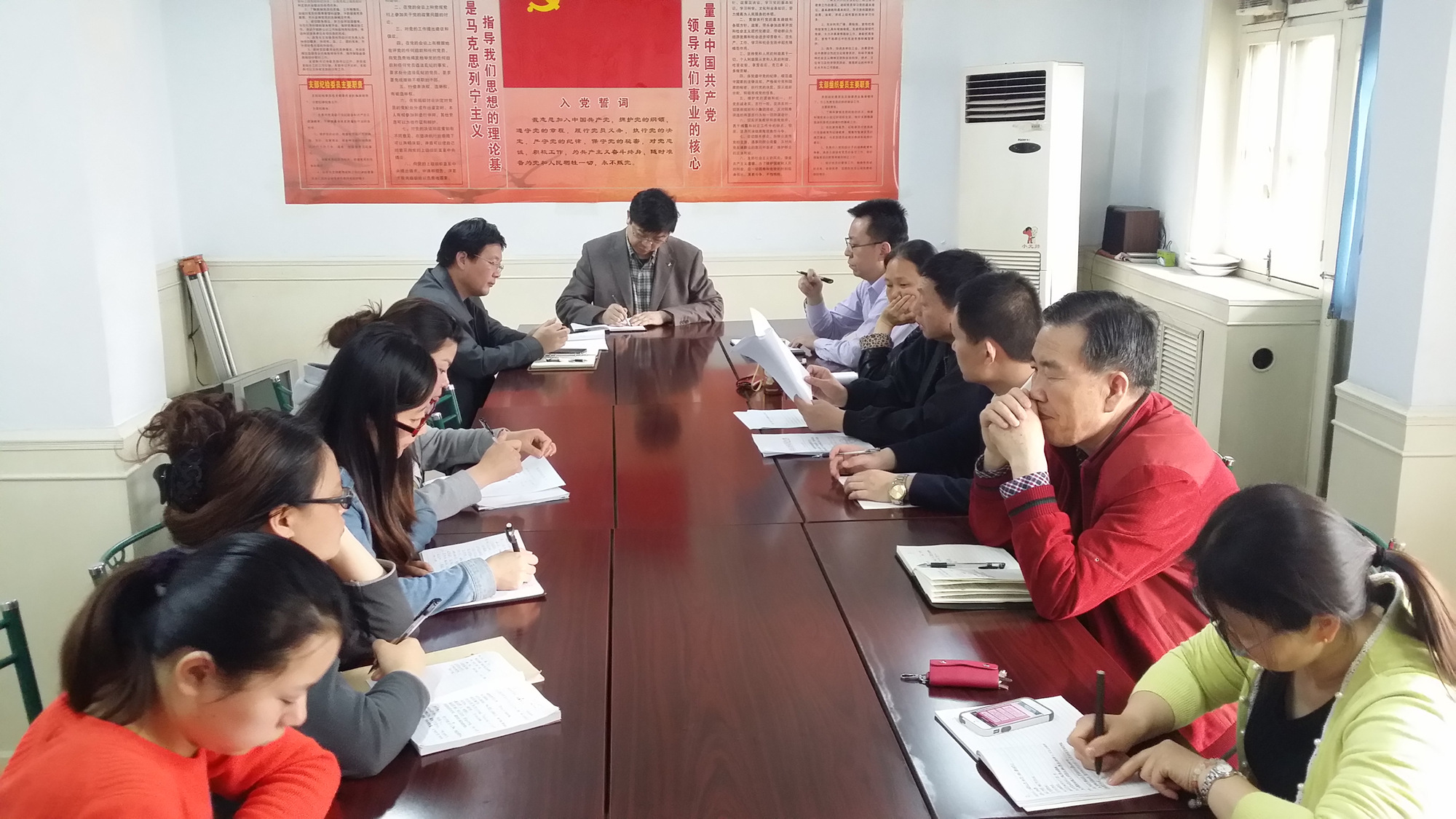 按照《中共西安市水務局委員會關于印發(fā)<市水務局“學黨章黨規(guī)、學系列講話,做合格黨員”學習教育實施方案>的通知》(市水黨發(fā)〔2016〕16號)要求,我公司于2016年4月22日下午召開“兩學一做”學習教育動員大會。會議由總支書記王長隨同志主持,公司全體黨員參加了會議。